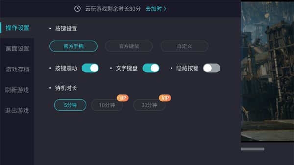 5、点击左上角的图标还能设置键位、画面、存档等功能