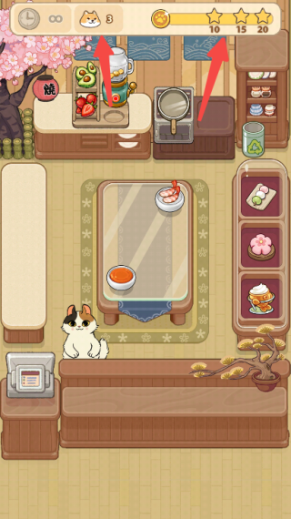 6、上方会显示剩余的顾客数量,右上方是游戏通关星级;