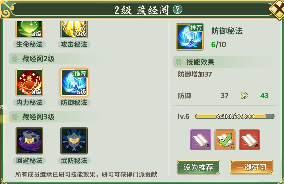 上交各类材料研习藏经阁技能,从而获得门派贡献