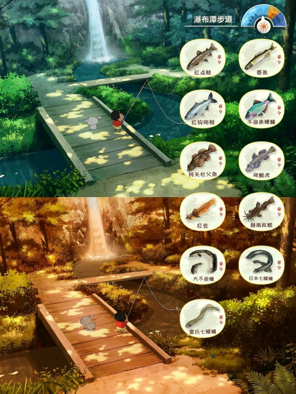 1、在秋田的各种河流中钓鱼,捕捉常见和稀有物种,将其添加到您的自然书籍收藏中。