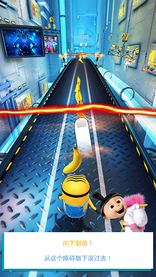 2、向上滑动屏幕跳跃,向下滑动屏幕滑铲来躲避障碍物。