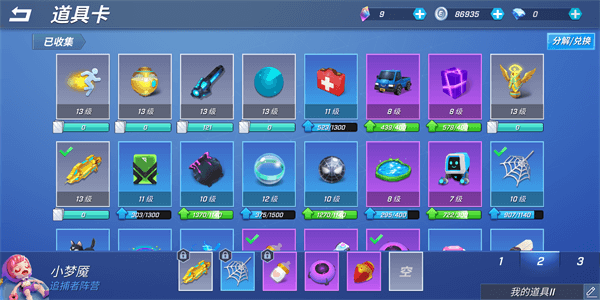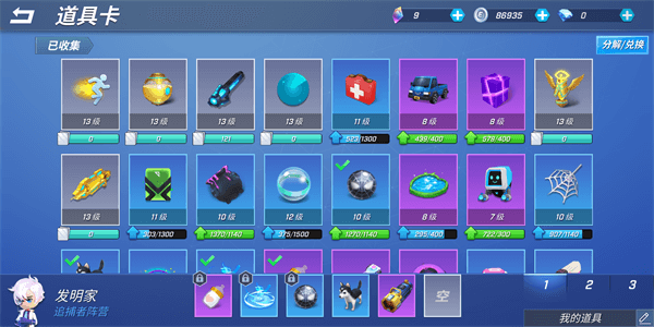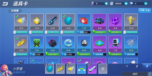 机器人,小眠:冲锋枪,滑板,雷达,魔法墙,战术捣蛋(锁前三个)