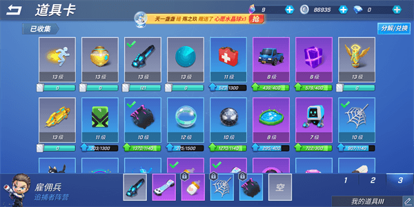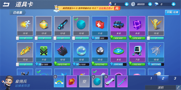 雇佣兵:能量剑,雷达,滑板,魔法墙,战术捣蛋(锁中间三个)