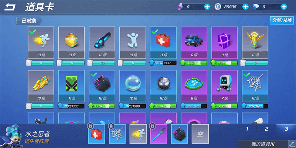 泷(水之忍者):能量剑,医疗箱,飞爪,酒桶,疾跑(锁前三个)