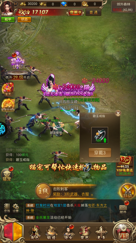 装备轻松易获取,击杀身边的小怪就可以获得属性不错的装备