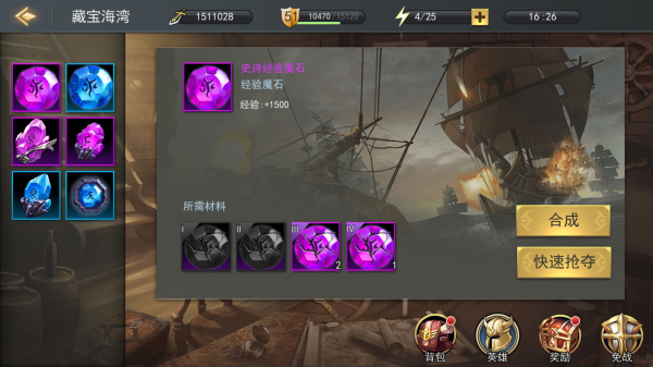 游戏中通过“藏宝港湾”功能获取魔石碎片来提升战力,碎片可以通过抢夺其他玩家获得,但要注意被别人抢走碎片的风险。免战功能可以保护自己的碎片,使用钻石购买免战时间是个不错的选择。