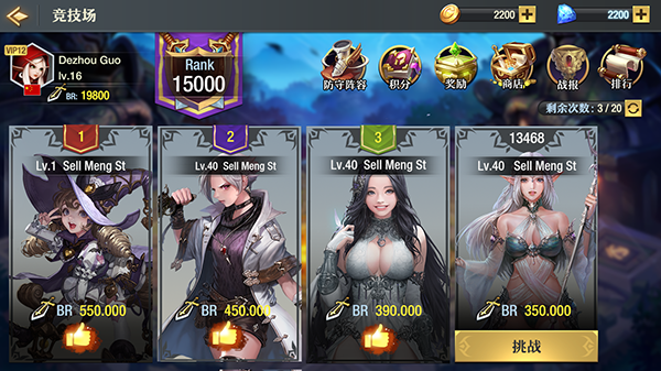 点击主城中“竞技场”即可进入挑战页面。