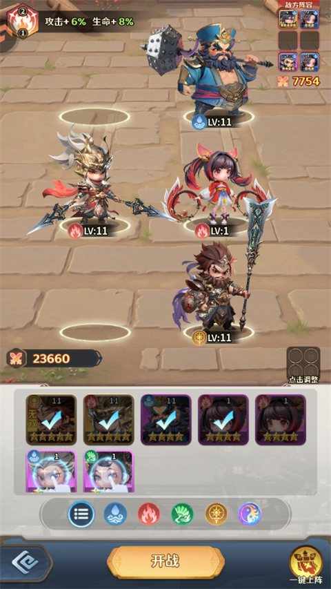 2、阵容搭配:前期选混搭过渡阵容,比如曹操+张飞+关羽+赵云+黄忠+蔡文姬,集中资源堆主C曹操,张飞抗伤、蔡文姬续航,推图爬塔无压力;后期转型版本强势的6混沌阵容,推荐吕布+貂蝉+典韦+曹操+诸葛亮+张飞,激活玄冥光环,兼顾输出、控制和生存,适配所有场景。
