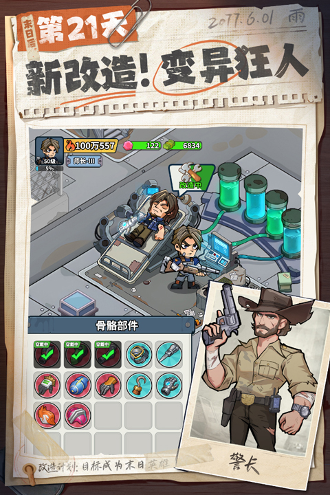 游戏特色包括自由探索、策略战斗以及联盟对抗。你可以招募不同技能的角色,组成小队挑战巨型丧尸首领;加入联盟与其他玩家合作,争夺战略要地。角色养成系统也很有意思,每个角色都有独特的技能组合,比如李警官的远程攻击和赛博剑圣的高输出。