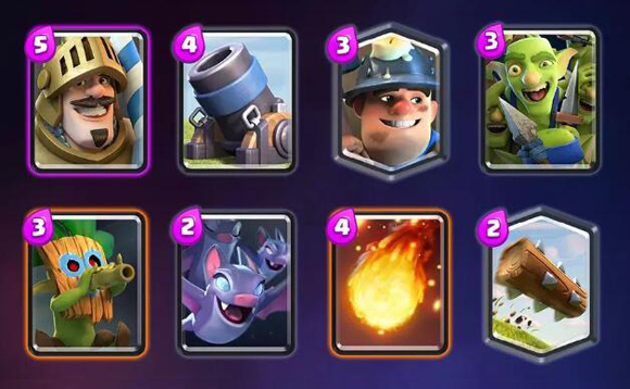 其中骷髅军团哥布林飞桶和火球、野蛮人滚桶、飞龙是必备的,骷髅墓碑和哥布林小屋可以二选其一,猎人可以替换成自己拿手的一张卡牌。