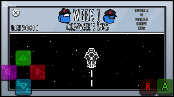 4、正式进入游戏后,左下角的方向键是打击按键,进入音乐对局,方向键头会逐渐从屏幕下方升到屏幕上方,在下方的箭头与上方固定的箭头重合时,玩家需要按下对应下屏幕上的方向键,才能得分。