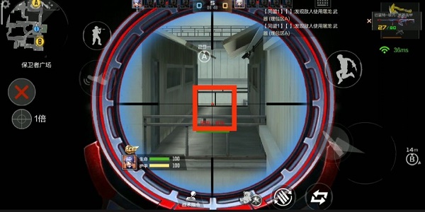保卫者狙击手的位置,在这可以看到中路方向,警家方向,还可以看到B斜和吧台出口,是个绝佳的狙击点