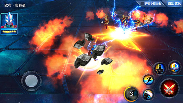 欧布以煌闪形态如雷电般向前突进,对敌人造成大量伤害的同时将会造成眩晕效果。