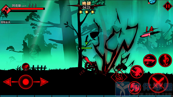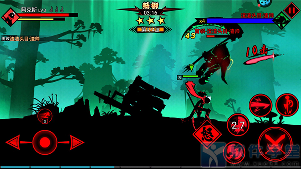 采用了经典的火柴人过关模式,根据手游的特点不断的进行调优,配合模拟摇杆的操作系统让玩家即使在手机上也能尽享流畅战斗