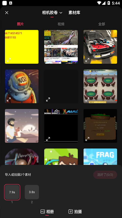1、把已经拍好的视频或者相片从相册导入到快影APP,我们就可以进行我们的倒放视频制作了。