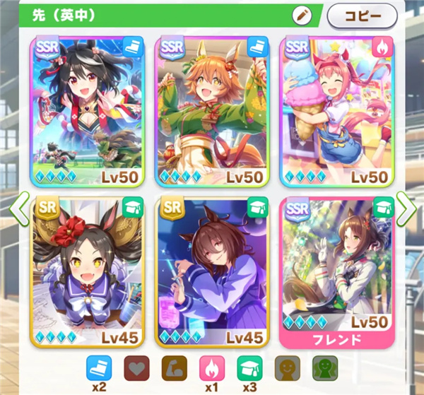 4、支援卡种类尽量保持在3种, 主训练点击尽量保持在2种,主训练设施等级优先级最高,其余钱多没处花再考虑是否花钱提升(你的box不支持你进行多项目训练,弱卡单彩低设施意义太低) 比如 3(自己卡不强+借强卡) 2(自己卡够强/差不多强+借种) 1(综合强度补足/挂件)