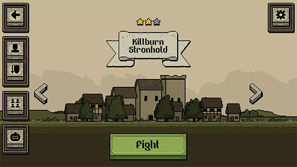 2、点击中间“Fight”即可开始游戏,上方从左到右依次为训练场、武器、人物;