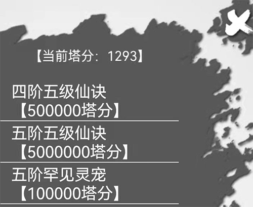 2、 开灵到脱凡境界,这个时候通天塔就解锁了。我们的目标是:10万塔分。前期不用想在通天塔商店兑换塔外属性,太远了,先兑换塔内属性。