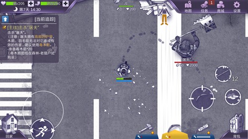 游戏特色包括上帝视角探索、饥饿与战斗的结合,以及原创剧情任务。玩家需要面对各种威胁,如丧尸、野狗和BOSS等,通过策略走位和武器选择来生存。比如屠夫BOSS需要用毒箭攻击,狼群则可以通过绕圈战术轻松击败。