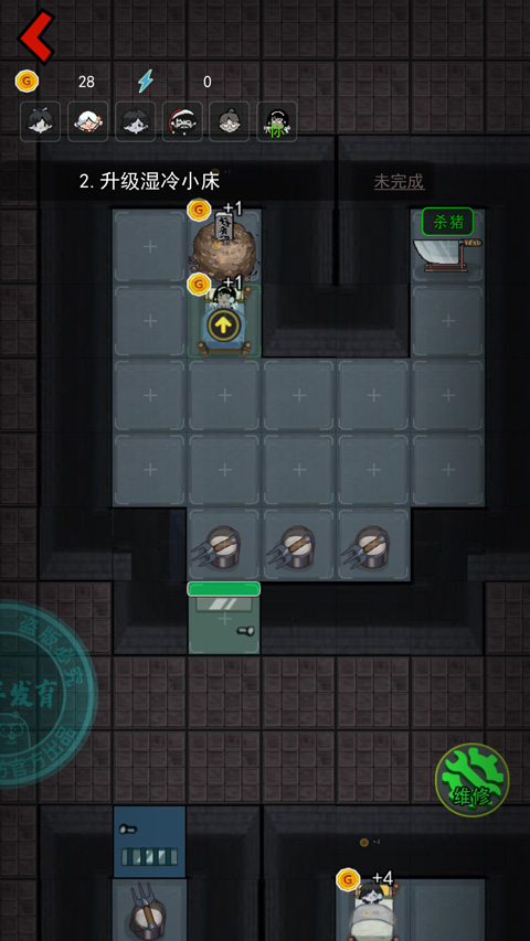 4、开局先升级门,然后建造炮台,其次升级床铺,床铺的等级决定你游戏的成败。
