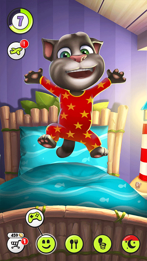 2、养育你专属的汤姆:和他玩游戏,喂他最喜欢的食物,带他上床睡觉。
