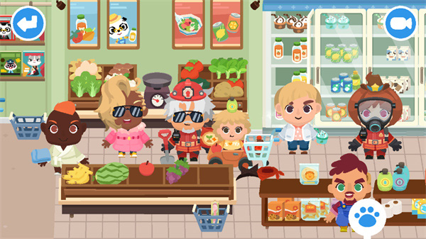 熊猫博士小镇游戏介绍而在超市场景中,孩子可以购买各类杂物、糖果,把想要买的蔬菜、牛奶放到自己的篮子中,然后再放到收银台去结账。为了体验真实的购买过程,孩子还可以在场景中的ATM机取钱用于购买,买完之后还可以和朋友在角落的咖啡店聊天。