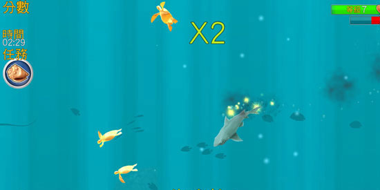 玩家朋友们不要想着吃大鱼得高分,小鱼分数低就不去捕捉。鲨鱼的饥饿程度是和跑动的距离有关的,如果不及时的进食,是很容易饿死的。所以不要挑食,大小都好。