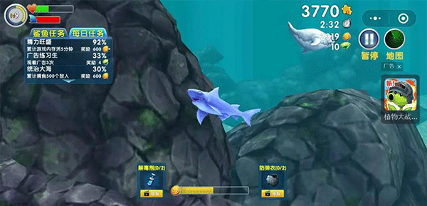 总的来说,《饥饿鲨进化》不仅画面精美,玩法也充满挑战性,适合喜欢冒险和策略的玩家。如果你对海洋冒险感兴趣,这款游戏绝对值得一试!