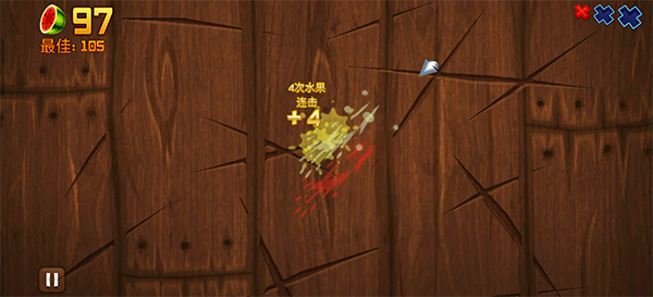 连续切割多个水果可以触发连击效果,获得额外的分数加成。