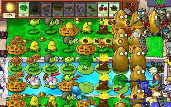 要点1:经济作物向日葵,水上必须放莲蓬,水路最后4格不会突然冒出僵尸,如果水上有钢帽子僵尸,此时你水路火力还薄弱,可以用墙国挡,也可以用25YG的海藻消灭。