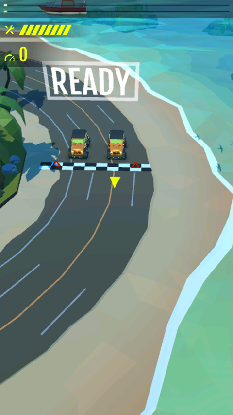 1、打开绝尘漂移最新版进入游戏,玩家需要通过圆盘来控制赛车的移动方向。