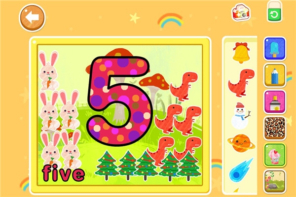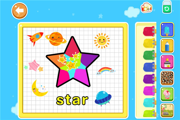 天才宝宝学前启蒙手游是一款专为2-6岁小朋友打造的一款英语学习游戏,拥有150多个英语单词配音,包含了各种动物、植物、颜色、水果、形状、交通工具、蔬菜等等,小朋友可以通过简单的游戏玩法学习这些日常英语单词。游戏的玩法也非常的简单,小朋友可以通过点击各种各样的图案图形,就能发出真人的语音解读,让孩子听的更清晰,也能锻炼孩子的听力。同时,小朋友也可以通过游戏中的字母卡片数字卡片等模型来绘制自己的专属卡片,培养小朋友的艺术细胞,让每个小朋友都能激发自己的创作能力。