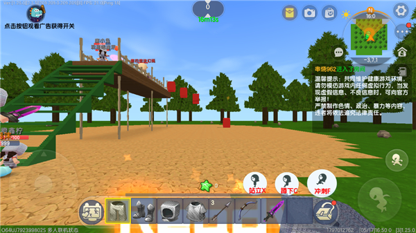 迷你世界云游戏最新版本是一款超级自由的像素沙盒游戏,没有任务也没有强制升级,完全是靠玩家自己的创意来创造和破坏方块。游戏里你可以当建筑大师造房子、建城市,也可以过田园生活种地养动物,甚至还能成为创世神制造火山洪水改变世界。刚进游戏会送一把斧子,用来砍树杀怪获取资源盖房子,晚上还得自己做床睡觉。工具箱功能很强大,能制作各种道具和机械装置,解锁新建筑还需要通过家园板块解锁。更新日志里提到材质升级光影效果更好了,还有新玩法诡异调查组等你来挑战。总的来说,这个游戏既能发挥创意又充满乐趣,特别是那些小成就比如第一次造床、第一次合成工具都特别有成就感!
