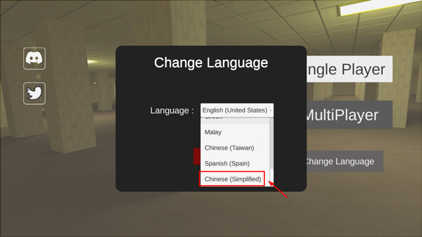 1、进入游戏后,如果游戏语言不是中文,点击Change Language;