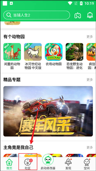 1、打开软件进入首页点击下方的社区栏目