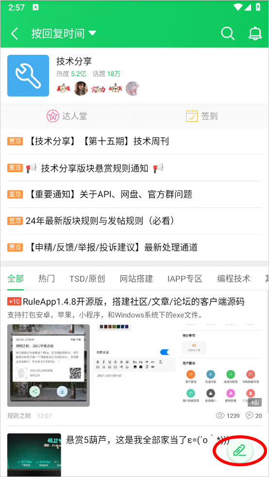 3、进入板块详情点击右下角的书写图标