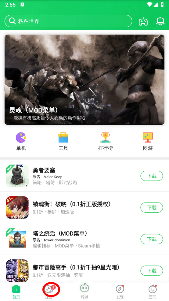 1、进入葫芦侠之后,在首页点击中间位置的“单机”栏目;