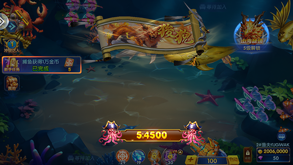 3、真人联机:游戏支持多人真实联网,玩家可以与来自世界各地的捕鱼爱好者一起竞技,享受联网捕鱼的乐趣。