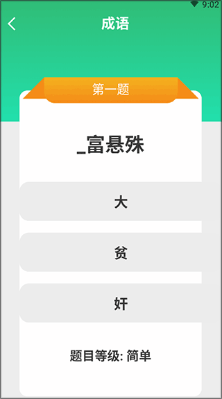 1、分为初级、中级、高级每本书中都会有不同的成语,打乱顺序让你进行填字