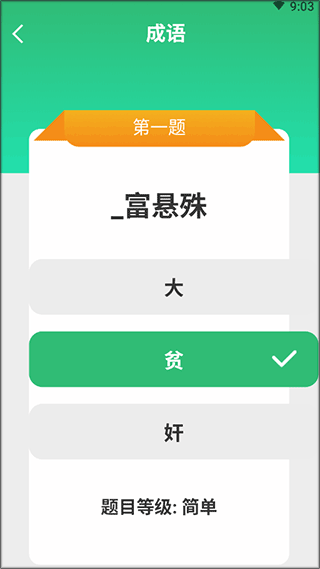 1、下载安装好成语精英,打开软件主页面,选择好难度进行游戏。