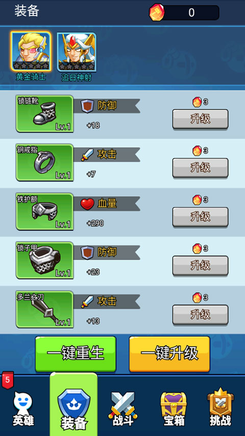 4、装备的升级需要强化石,也可以选择一键重生;