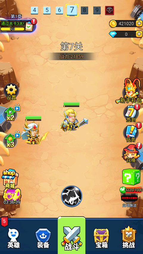 8、通关到50关时,可以解锁王者之塔,100关时能够解锁竞技场,更多玩法等着你!
