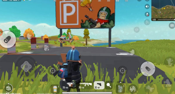 2、游戏进行一段时间以后,地图随机刷安全区,过几分钟会有一片蓝色的毒替代安全区外的地方,在毒内会持续掉血,于是要求玩家在一定时间内跑到安全区内。