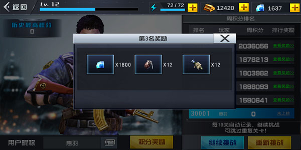 3、参与无尽模式获得。在《火线冲突》游戏中,玩家可以通过无尽模式打榜获取钻石,排名越前奖励越丰厚哟。
