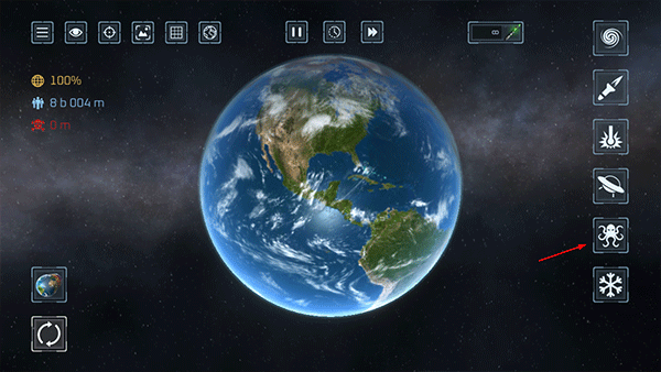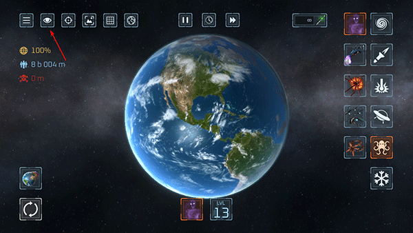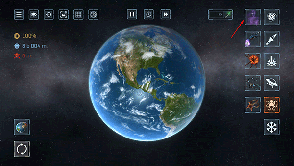 1、首先打开星球毁灭模拟器,点击下图中的按钮;