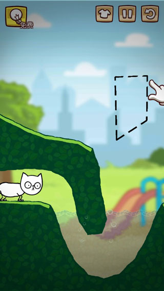 2、去寻找回家的路,为了帮助小猫找到水或食物,绘制一个形状然后巧妙地利用地形和关卡内的互动场景。