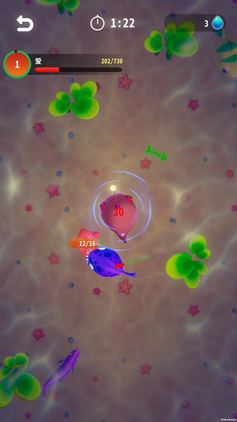 整款采用了慢节奏的玩法,让玩家可以随时开始,随时可以结束,而且游戏内置多种精彩的动画效果,玩家可以在游戏中找到各种各样的海底生物,它们都以卡通风格的美术为你呈现梦幻般的海底世界。另外游戏中还有丰富的升级系统,有诸多的升级特性可供玩家选择升级,诸如可以降低范围内敌人移动速度的假性中毒特性,以及在攻击时附带流血效果的撕裂特性等,这些都可以让玩家尽情享受华丽的进化过程,特别是游戏内还有加速模式,可加快游戏进程,有需要畅玩的玩家可以在本站免费下载畅玩。