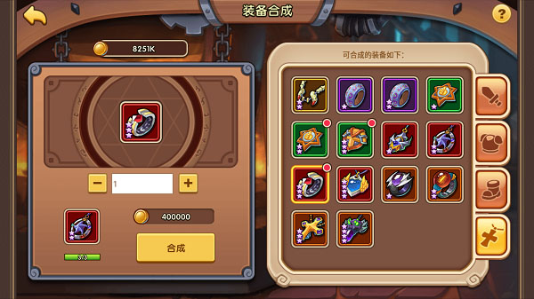 装备合成:黄色以上装备可以进行合成,合成需要消耗对应装备和金币。