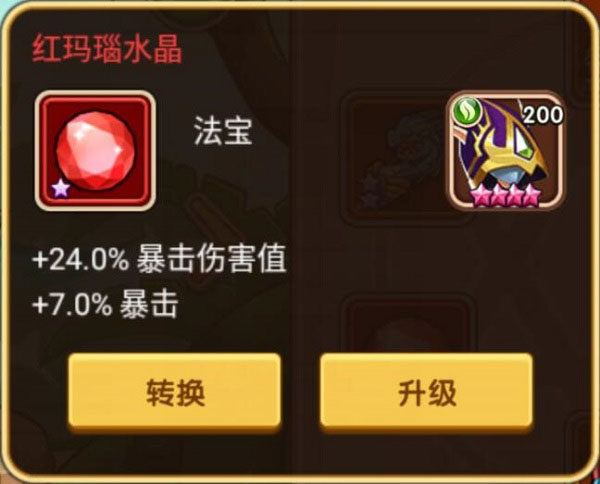 水晶升级:消耗魔法之尘和金币给水晶升级,升级会随机改变并提升水晶的属性。