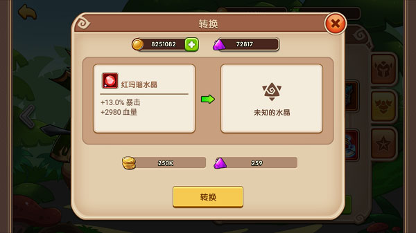 水晶转化:消耗魔法之尘和金币随机改变水晶的属性。